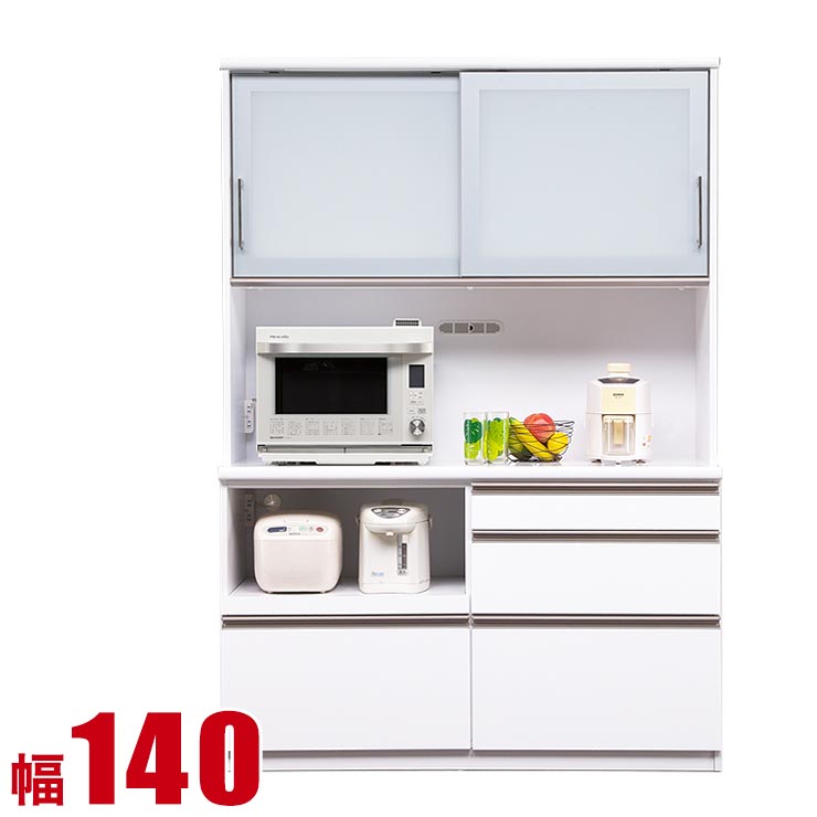 食器棚 ロデオ ホワイト 幅140 ロータイプ 完成品 日本製