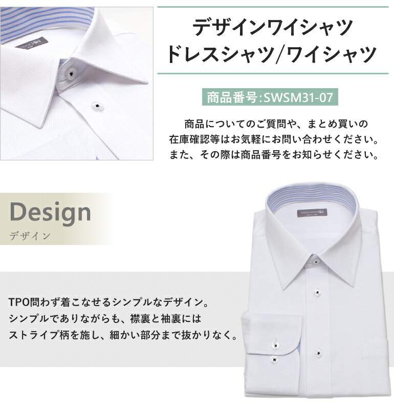 「仕事がデキる」「取引先や上司にウケる」「女性にモテる」ビジネスシーンやドレスシーンでのキレイめスタイルに是非取り入れてみてはいかがですか?型番SWSM31-07商品情報・長袖・当店オリジナルモデル・丈夫で速乾性のある綿混素材・イージーケア素材・ポケット数:1・スペアボタン・襟やカフスの型崩れを防ぐトップヒューズ加工サイズ・素材・カラー8サイズ展開:S/M/L/LL/3L/スリムS/スリムM/スリムL綿25% ポリエステル75%(イージーケア性の高い生地)-付属品-この商品のお問い合わせ番号BLR-item-52514