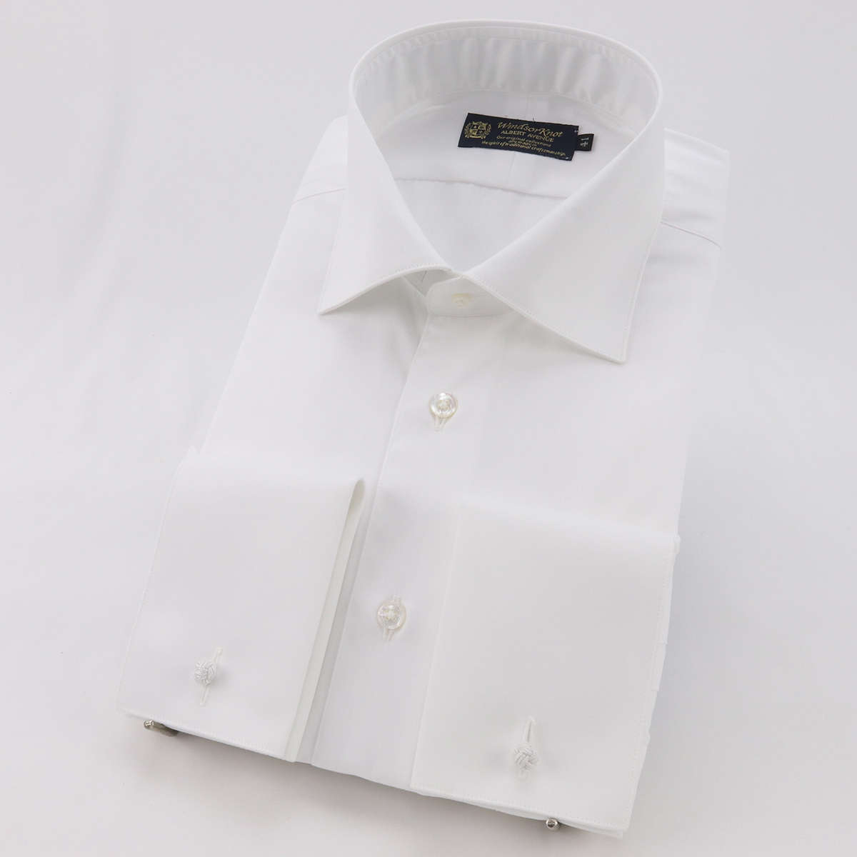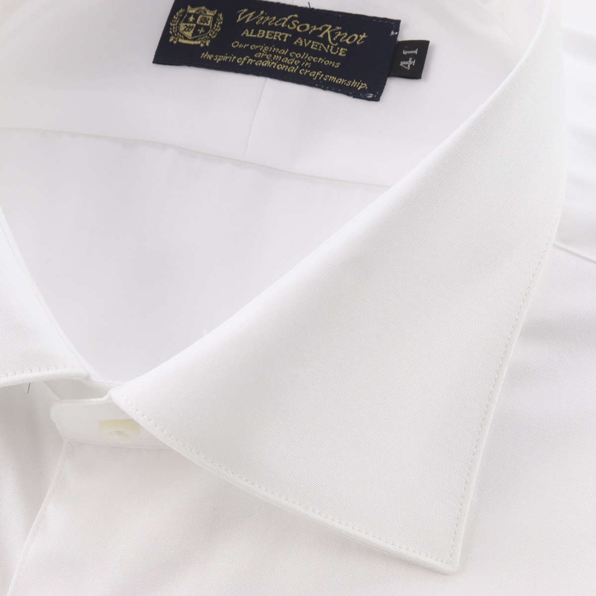 (ウィンザーノット アルバートアベニュー) Windsorknot Albert Avenue 白無地 ブロード THOMASMASON(トーマスメイソン)生地 綿100% ワイドカラー ダブルカフス 日本製 (細身) ドレスシャツ( 送料無料 )