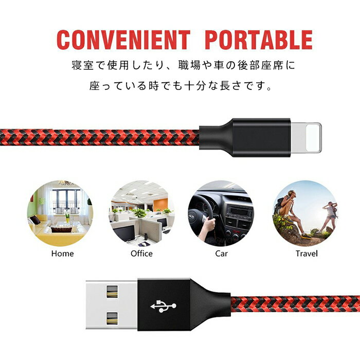 iPhone NYLON BRAIDED CABLEナイロン 充電ケーブル 1m 【商品スペック】寝室で使用したり、職場や車の後部座席に座っている時でも十分な長さです。